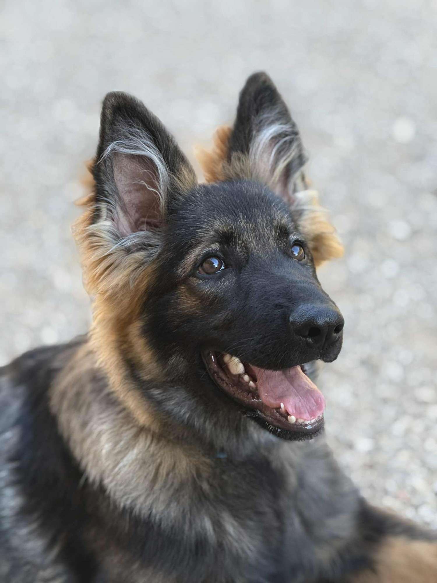 Bailee is a beautiful black sable plush coat female from Prim and Twig's litter. She was returned to us due to no fault of her own. As a young puppy she showed no signs of being a plush, but as she matured, she became the beauty you see! However, that is not what her owners wanted and she was returned. She is a very sweet and affectionate female, she is house trained, crate trained, has basic obedience. She knows, sit, down, heel, stay and leave it. She is obviously still very green in her obedience and it has all been done with treats, but she is a rock star! She is good with other dogs, even small irritating ones like my Corgi. She is current on all vaccines and heartworm preventative. She is an awesome little girl and if I had not kept her littermate, I would just keep her. She is currently available for sale. Feel free to text or call 423-595-8317 or email camelotshepherds@gmail.com for more info.