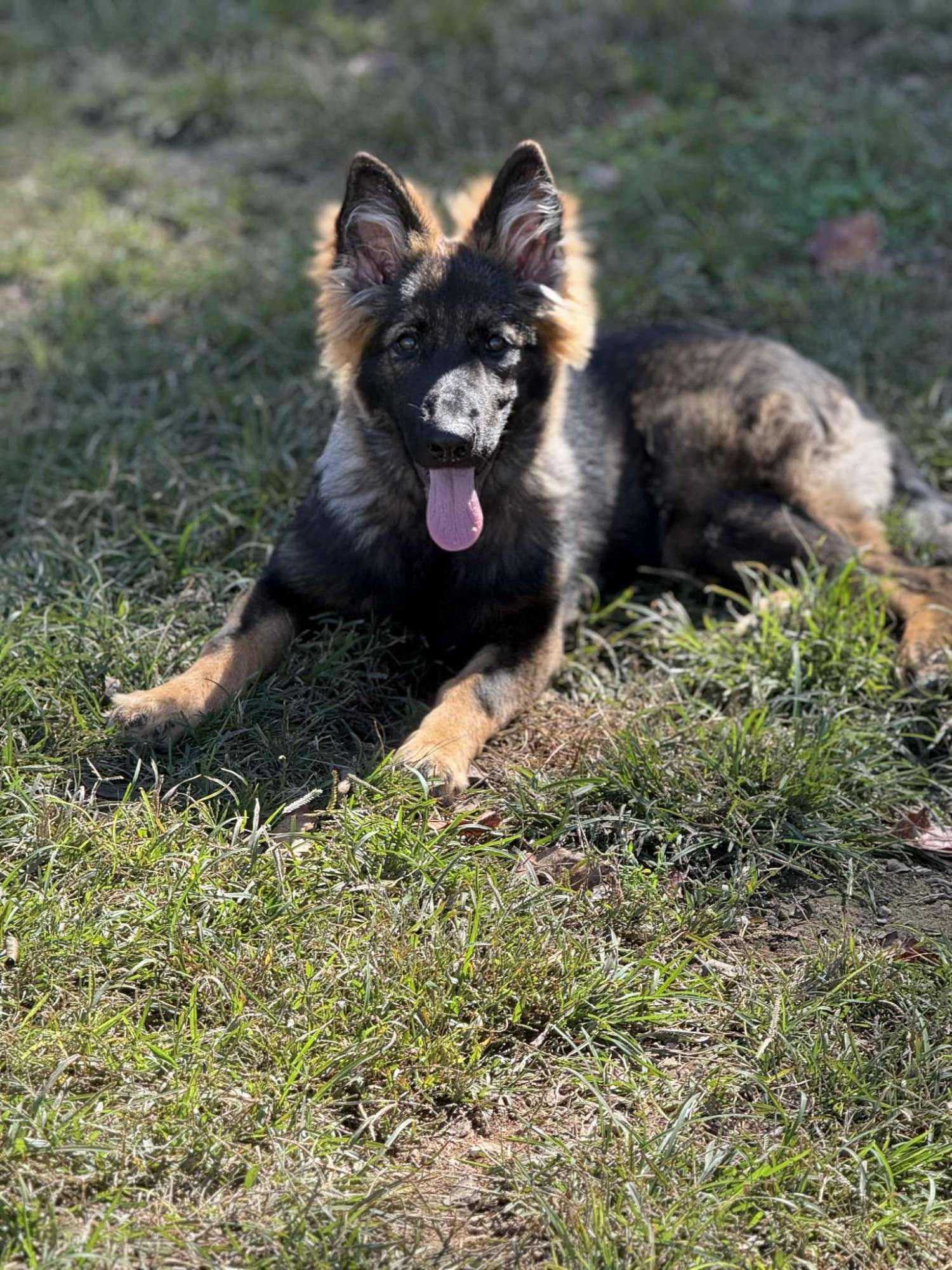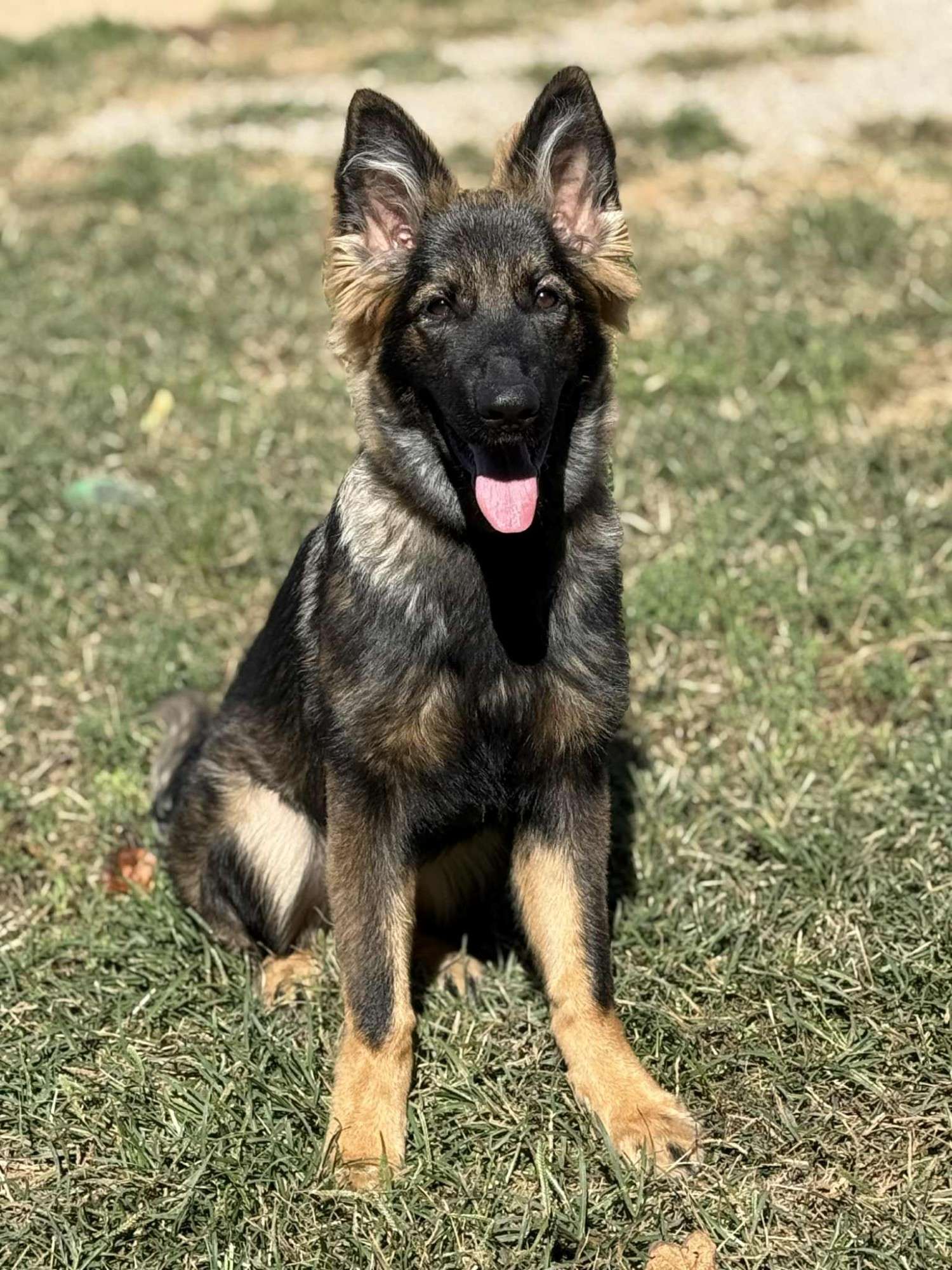 Bailee is a beautiful black sable plush coat female from Prim and Twig's litter. She was returned to us due to no fault of her own. As a young puppy she showed no signs of being a plush, but as she matured, she became the beauty you see! However, that is not what her owners wanted and she was returned. She is a very sweet and affectionate female, she is house trained, crate trained, has basic obedience. She knows, sit, down, heel, stay and leave it. She is obviously still very green in her obedience and it has all been done with treats, but she is a rock star! She is good with other dogs, even small irritating ones like my Corgi. She is current on all vaccines and heartworm preventative. She is an awesome little girl and if I had not kept her littermate, I would just keep her. She is currently available for sale. Feel free to text or call 423-595-8317 or email camelotshepherds@gmail.com for more info.