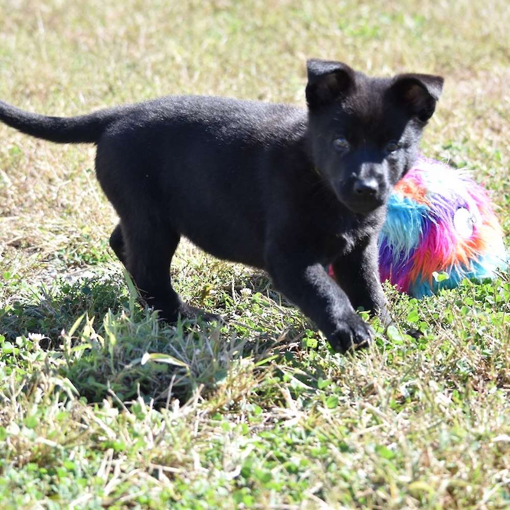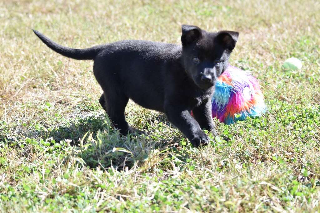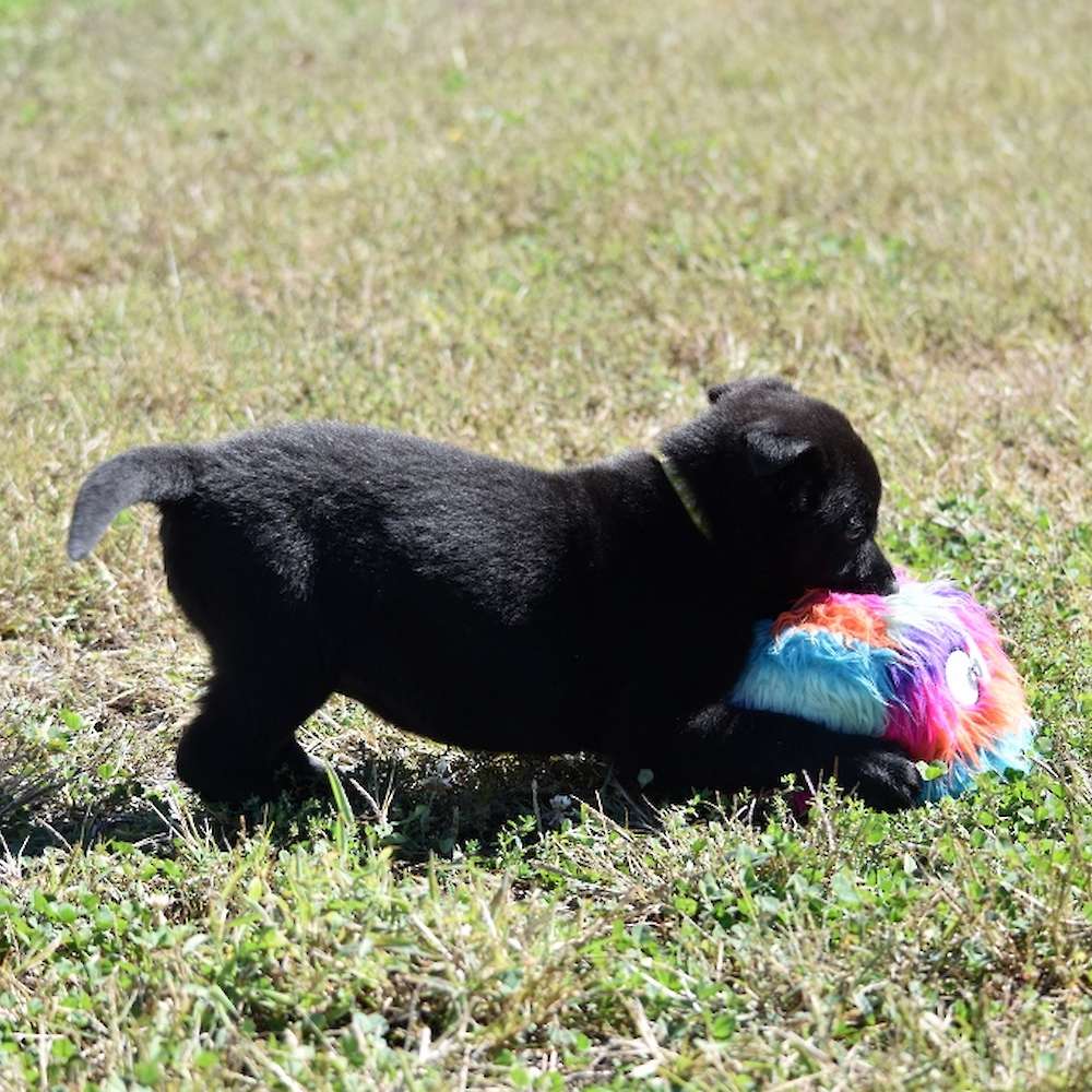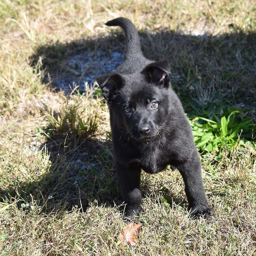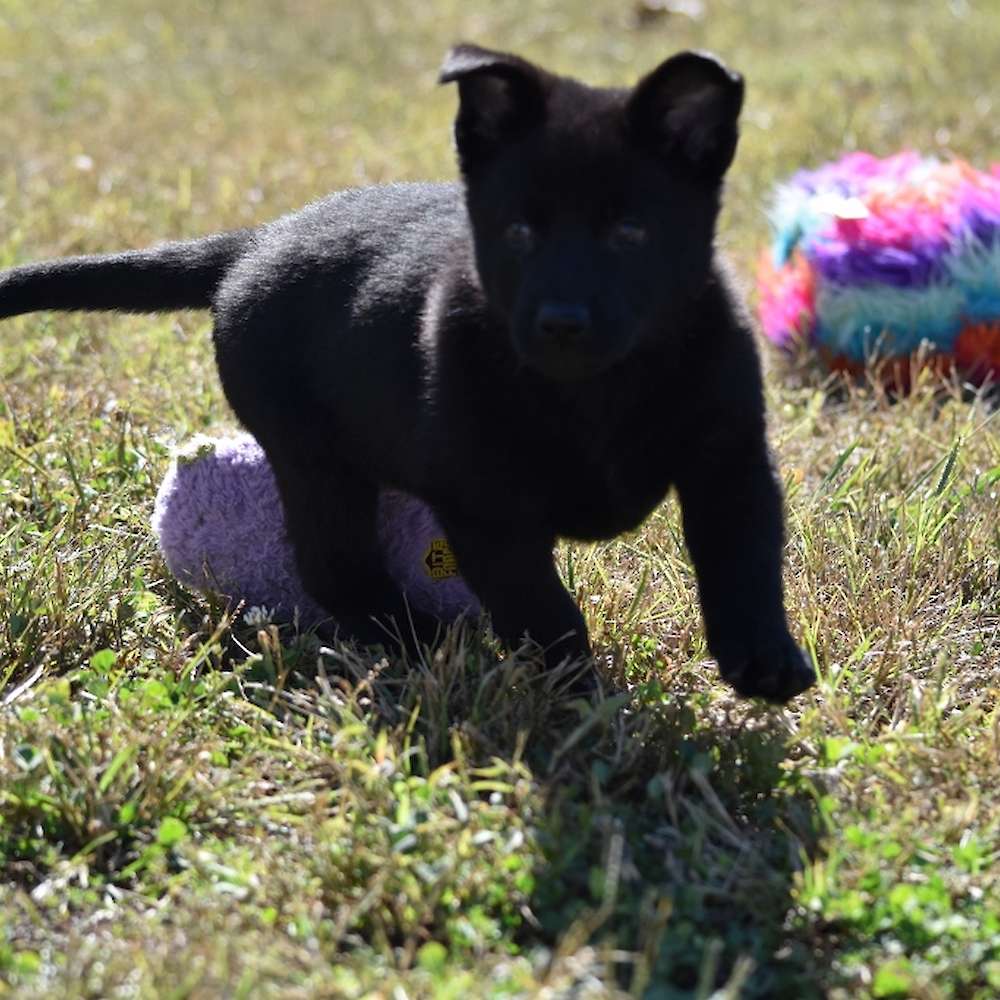 Dahlia is a solid black female from Cinder and Creed's litter born 8/29/25. She is the little stinker in the litter, very outgoing and a tiny bit mischievous. She loves to play and interact with people, she has good toy and food drive, which will make training really easy. She loves attention and will do anything to get it. She can obviously carry object larger than herself (see picture with ball). She is started on house training, She has been vet checked and is current on vaccines She is microchipped as well. She is currently available. If you would like any more info please feel free to call or text 423-595-8317 or email camelotshepherds@gmail.com