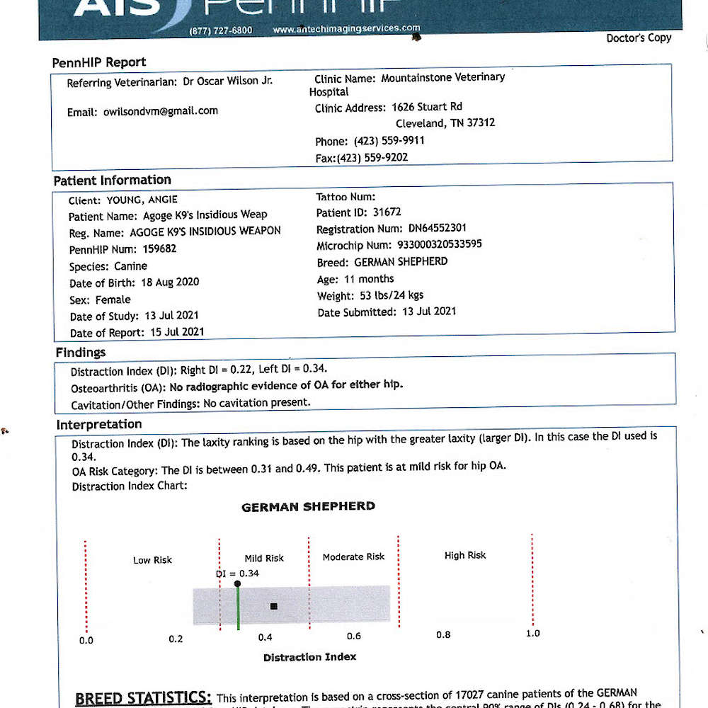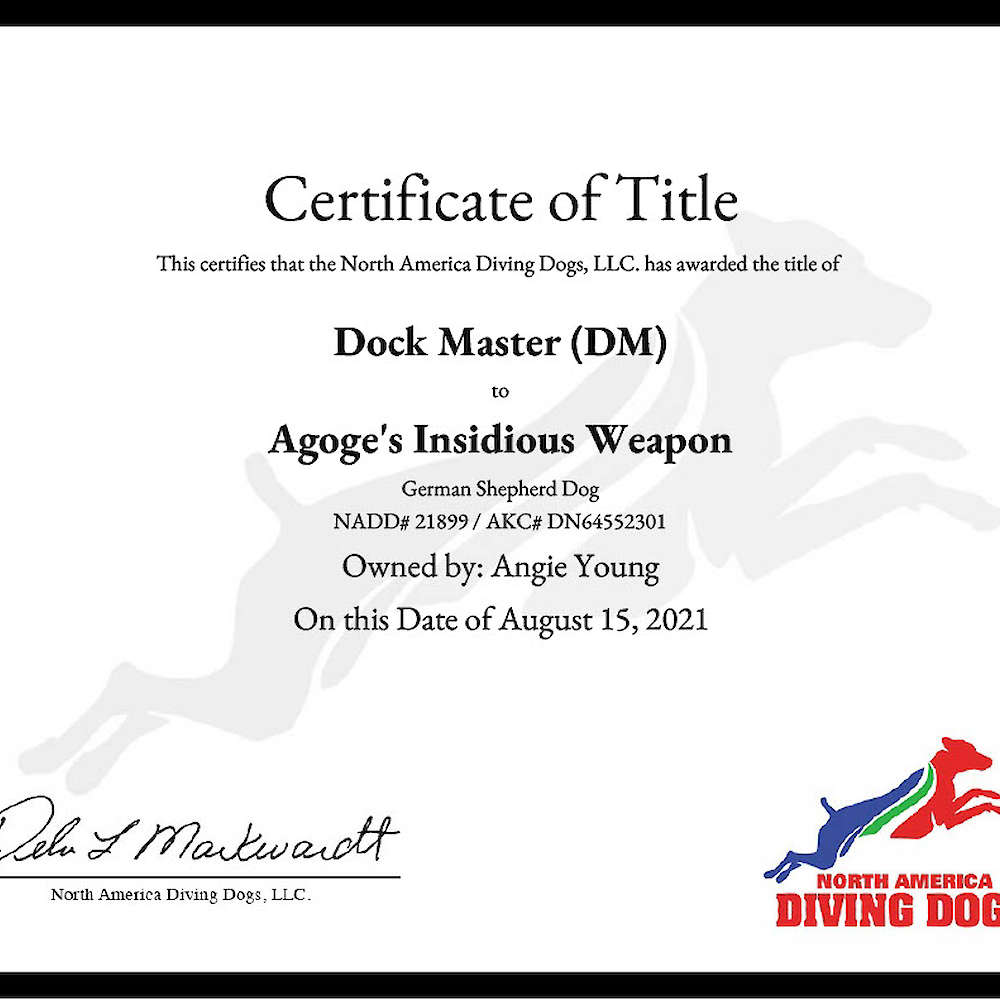 Isy is a 1 year old Bi Color female from Agoge K9's, she is an extremely intense little girl. Although, she is social and very outgoing, her working drive and ability is extreme. She does everything with 110% effort. She was jumping 24+ feet at the end of this dock diving season and she was not quite a year old. She was hitting 16 ft in Air Retrieve by the end of the season. We can only imagine what next year holds. She is working toward her PSA PDC, which we hope to earn in the fall of 2022. She has been Penn Hipped and OFA Premlins. Her PennHip score was in the top 90% of the breed with a score of .22/.34, OFA prelims Hips Good and Elbows Normal. We think she in an excellent addition to our breeding program and can't wait to see what her future holds. We just sent her DM testing.