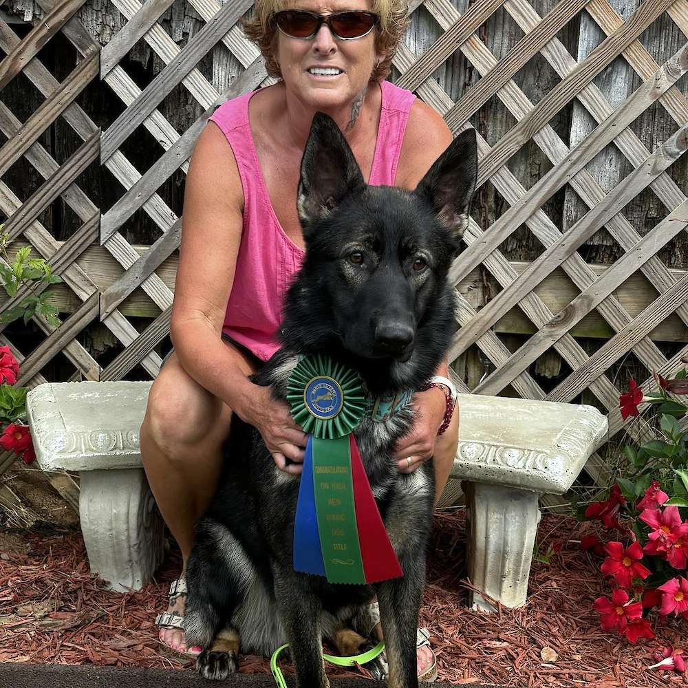 Twig is Groot's son with Isy, this boy is his dad made over. He is a working machine. He excels at everything put in front of him! I could not be happier with what I am seeing from him. He is going to do amazing in Nosework and he loves dock diving! He is very social and outgoing, he is just a joy to be around. He is very well built and has very nice orthopedics with a PennHip score of .36/.32 and OFA Good Hips and Elbows. I am super excited to see what he produces in his puppies. Twig earned his ORT a few weeks ago and will be competing for his NW1 in the near future.