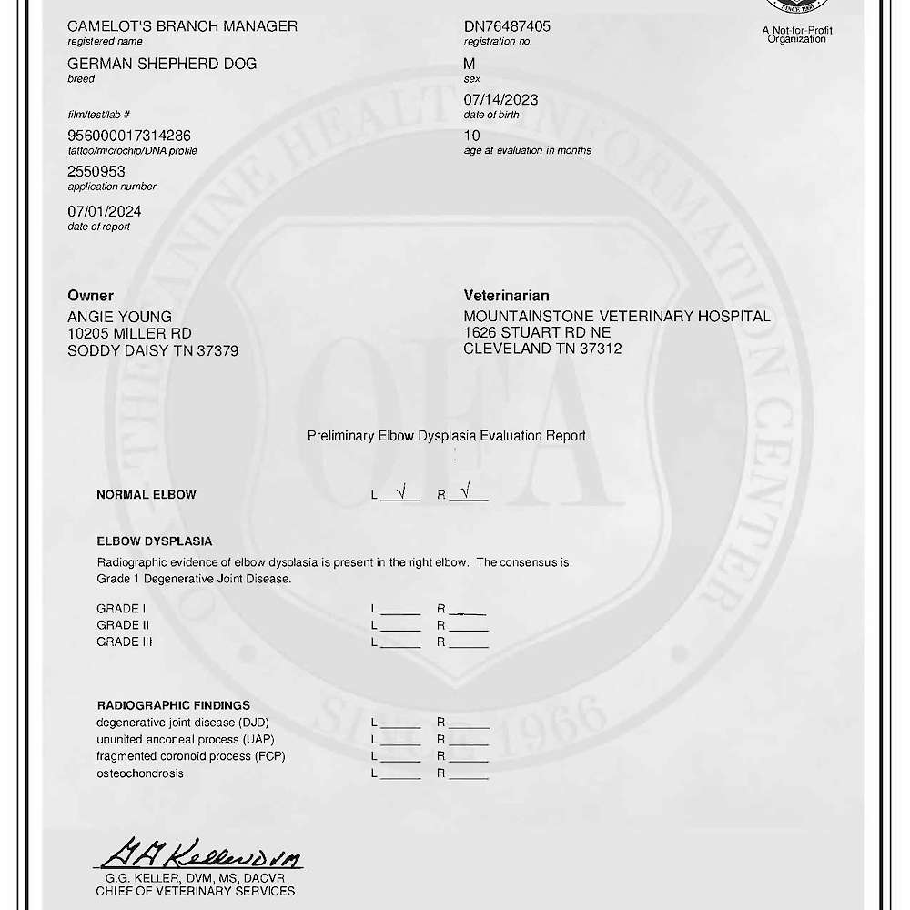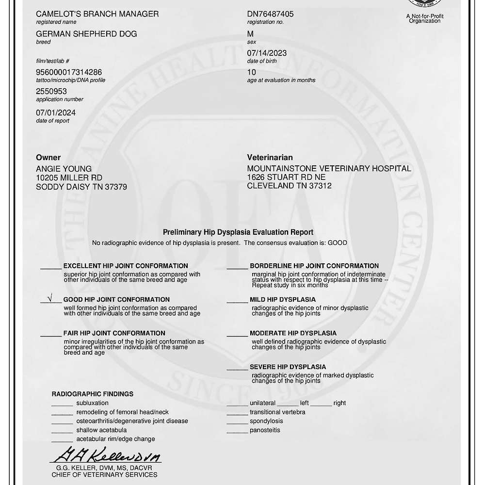 | Sire | Camelot's Galactic Warrior "Groot" |