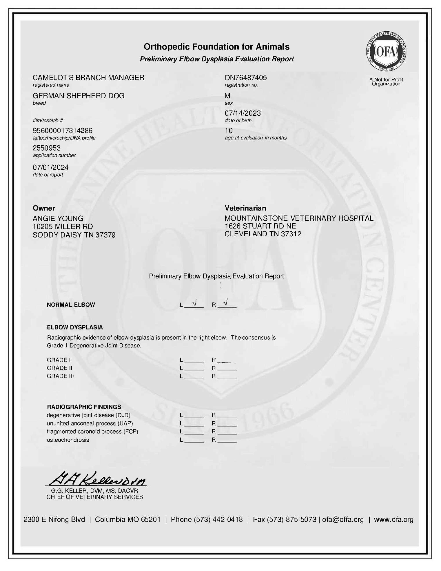 | Sire | Camelot's Galactic Warrior "Groot" |