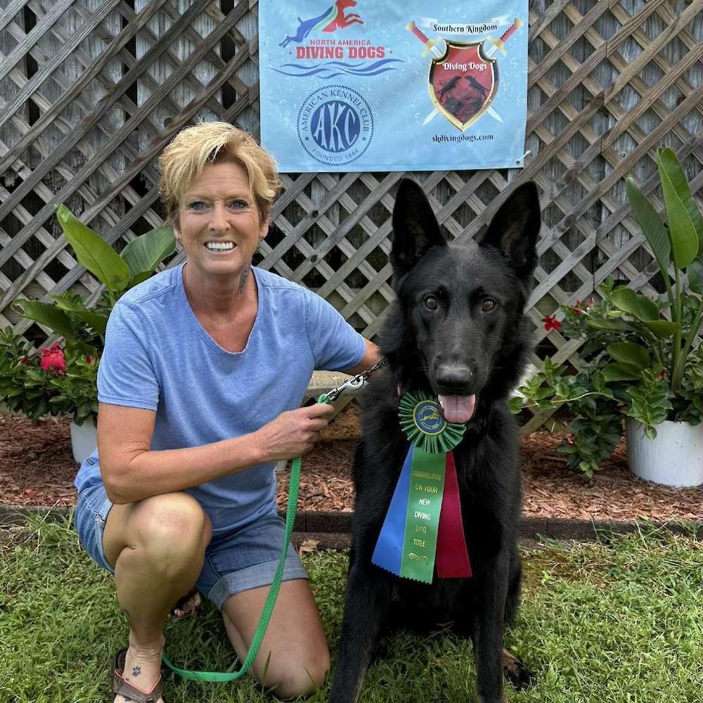 09/3/25 Secret is our young up and coming male. He is everything I was looking for in the breading between Q and Ready. He is very affectionate, social, outgoing, with a tremendous amount of drive and working ability. He is truly a point and click dog. Just show him something one time and he has it. He is currently in training for Nosework and is doing very well, we hope to try for his ORT in October. He is also doing dockdivng distance and jumping in the Senior division and in Hyrdodash where is average speed retrieve is about 16 seconds. He is large boned and currently weighs about 85 pds at 16 months old. We have high hopes for his future and to see what he produces.