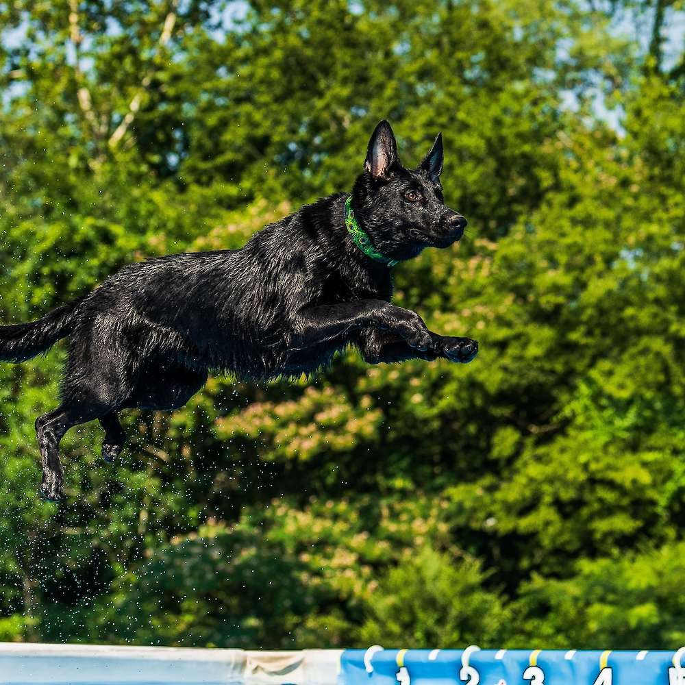 Cinder is a 3 year old solid black female from Quanah and Hero's 1st litter, she is an awesome little girl, with a lot of drive, grit and determination. She has competed in Dock Diving, she is currently in training for her PSA PDC, which we hope to earn next fall. She is also working toward her first Rally Obedience title. She has excellent overall temperament, with a nice off switch in the house, but when she works, she gives it her all. She has a Penn Hip score in the top 90% for the breed, with a score of .34/.35. Elbows are Normal. She is DM clear by parentage, as both parents are DM clear.