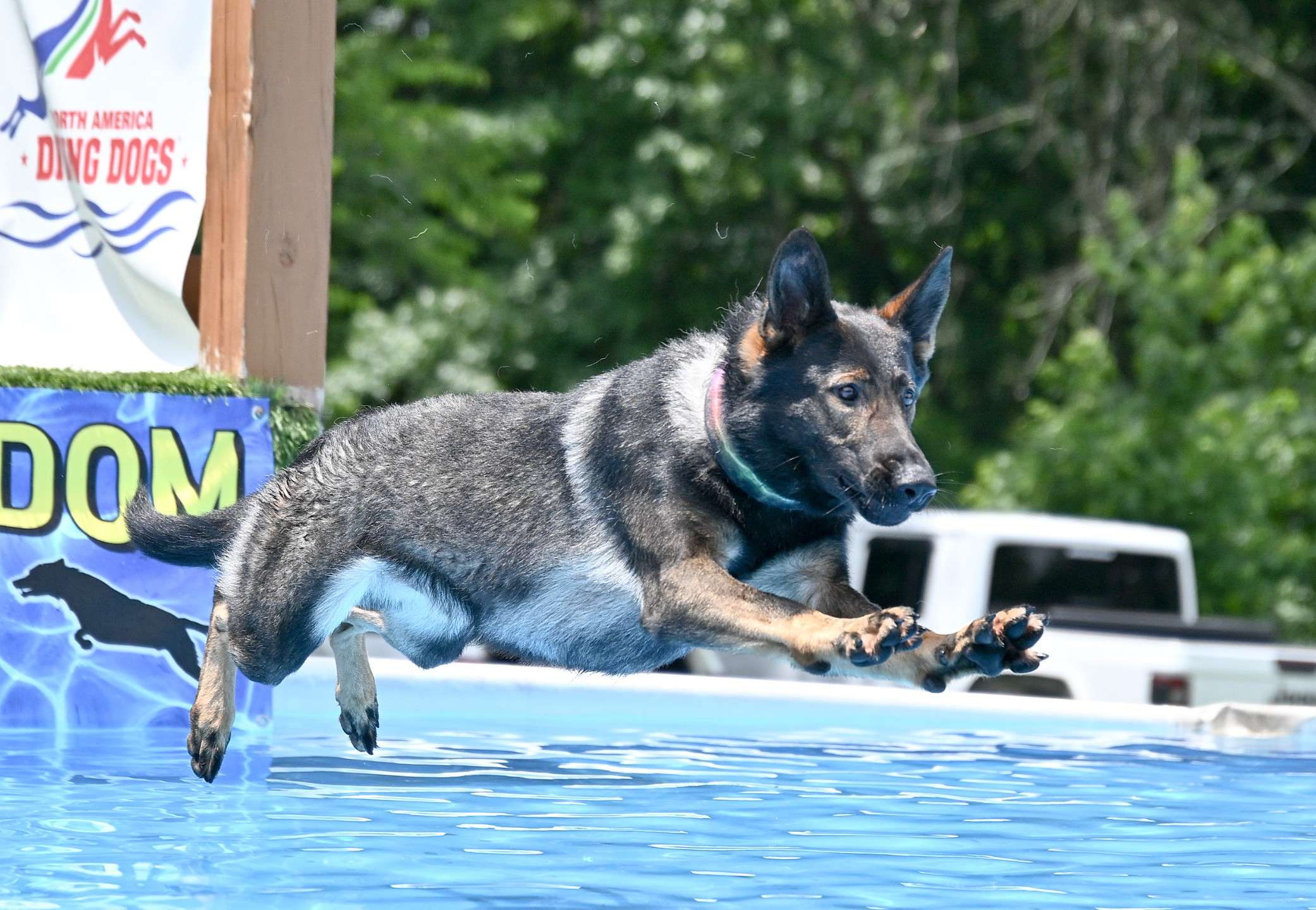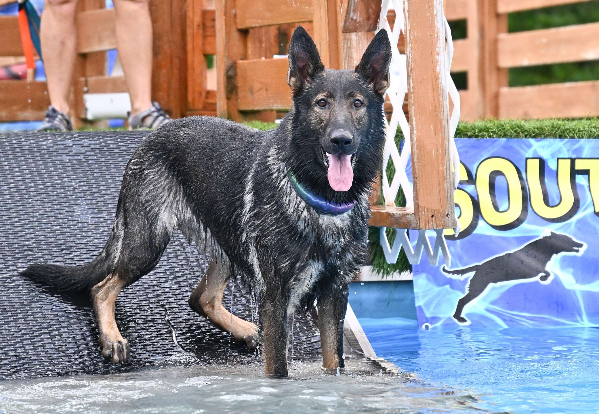 Creed is our upcoming young stud and we could not be happier with this big guy! He is a beautiful black sable male, he has really nice overall structure with large bone and good size. He is very outgoing and full of life, he enjoys everything he does and watching him work is a true joy! He gives everything he does 110%! Creed is from another breeder and we could not be happier with him. He has a phenomenal pedigree. Creed is currently competing in NASCW, he has earned his ORT and will be competing for his NW1 in the fall. He also loves Dock Diving he has a DJ and is working on his title in Hydrodash. Creed has good orthopedics with OFA Normal Elbows and Good hips. With a Pennhip score of .28/.31. We have high hopes for his future litters.