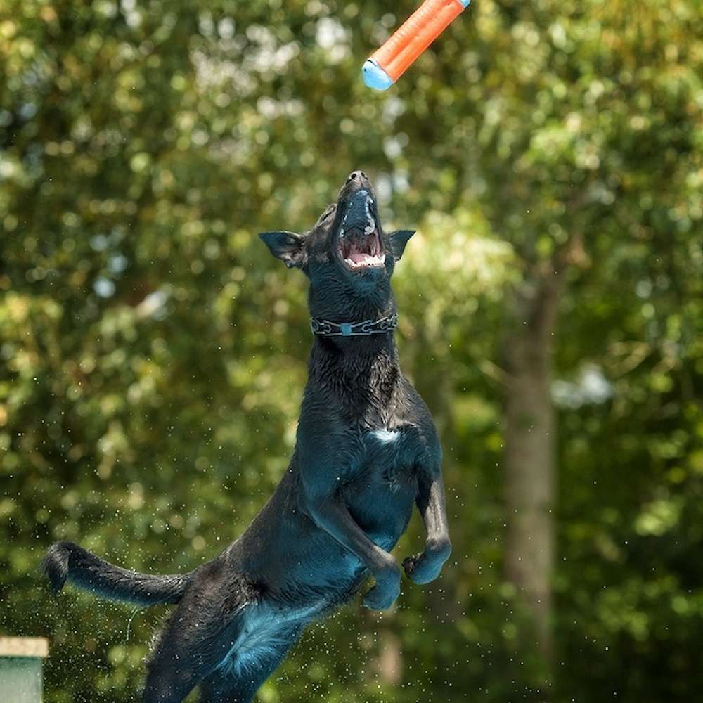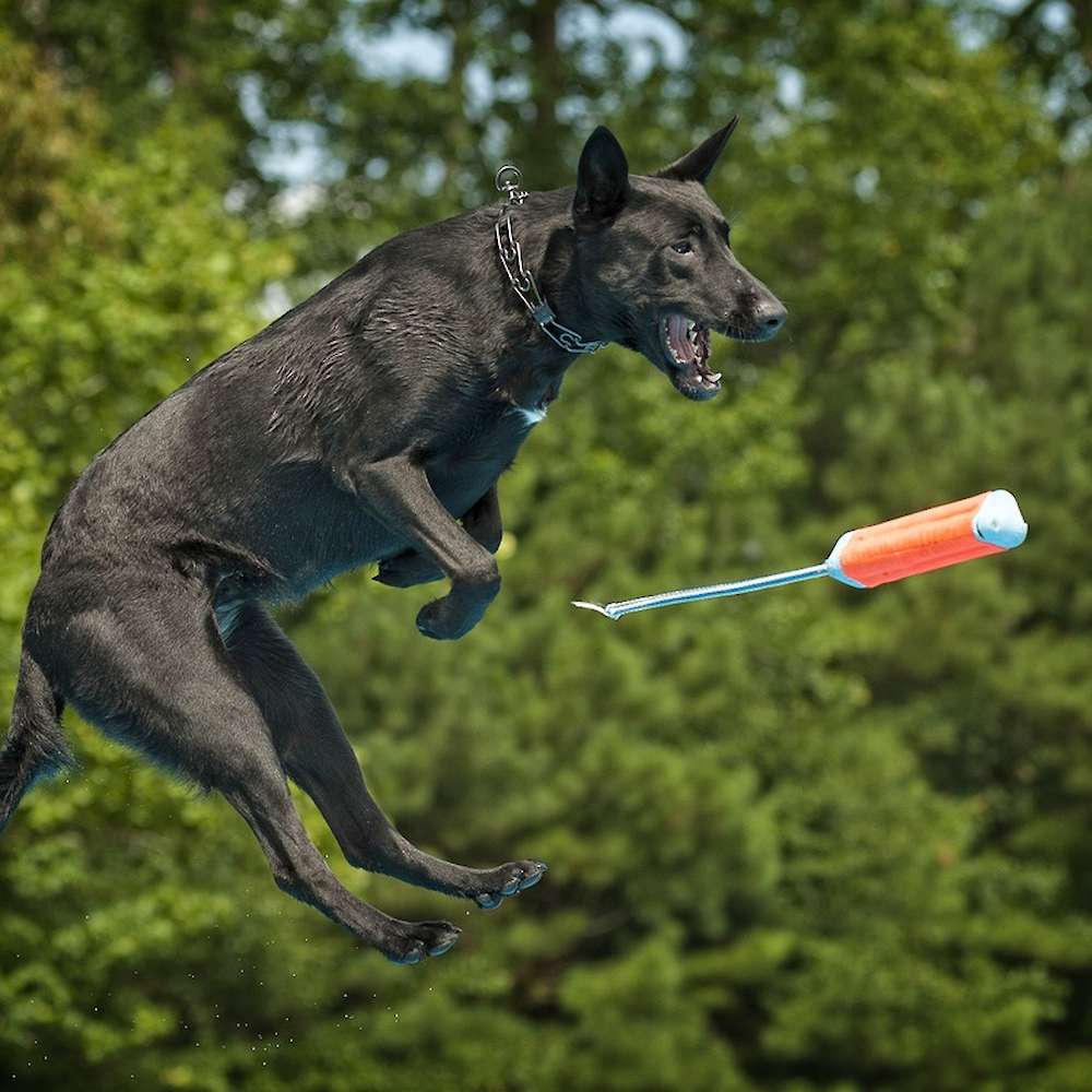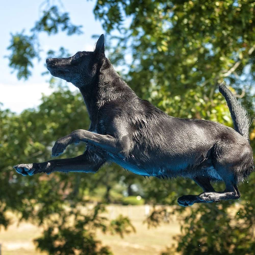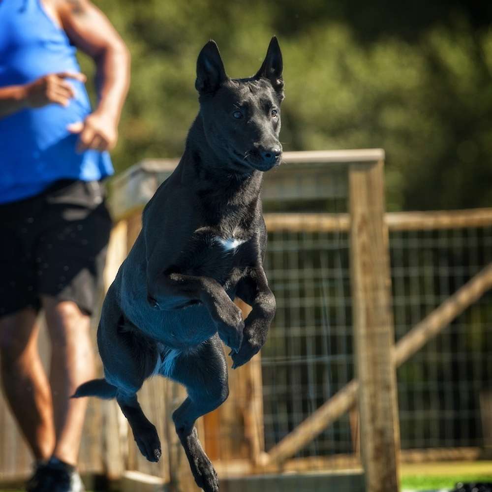 Eerie is a 2 year old, black malinois. She is from solid working lines and her pedigree includes some of the top working dogs in Holland. Eerie is very social and outgoing. She has good overall structure and nice bone. She has excellent working drive, but has a great on and off switch. She can go from protection work to a couch potato in an instant. She loves to work and dock diving has become her favorite sport. She has excelled in dock diving and earned 3 titles in the first year of the sport. She is ranked 12th out of the top 100 dogs in the sport.