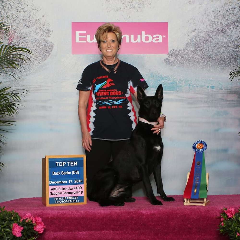 Eerie placed in the top 10 at the NADD Dock Diving Nationals and won 7th place out of those 10. She is an amzing little girl, this was her first year of dock diving. Her personal best jump is 23'11''.