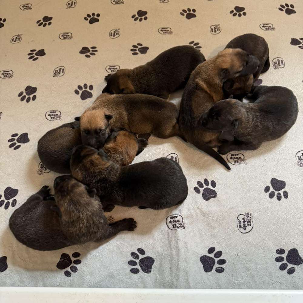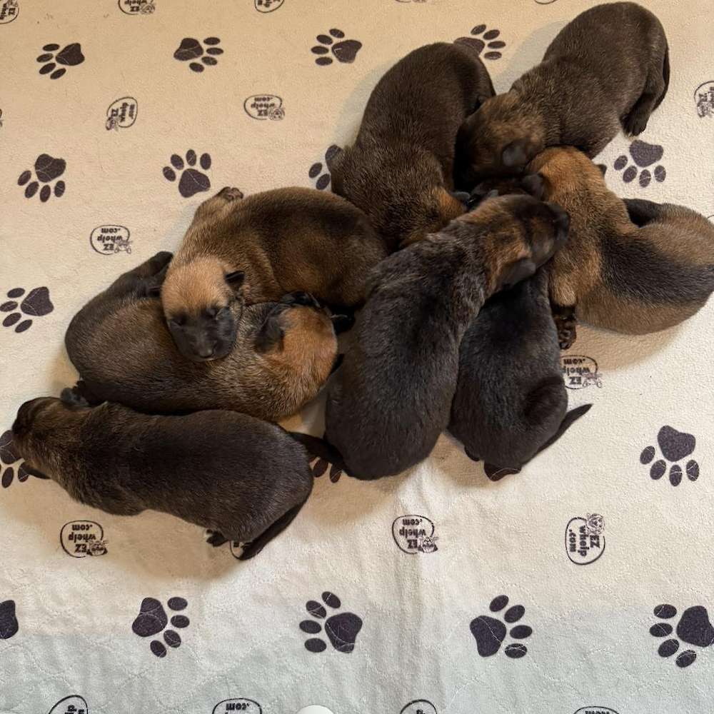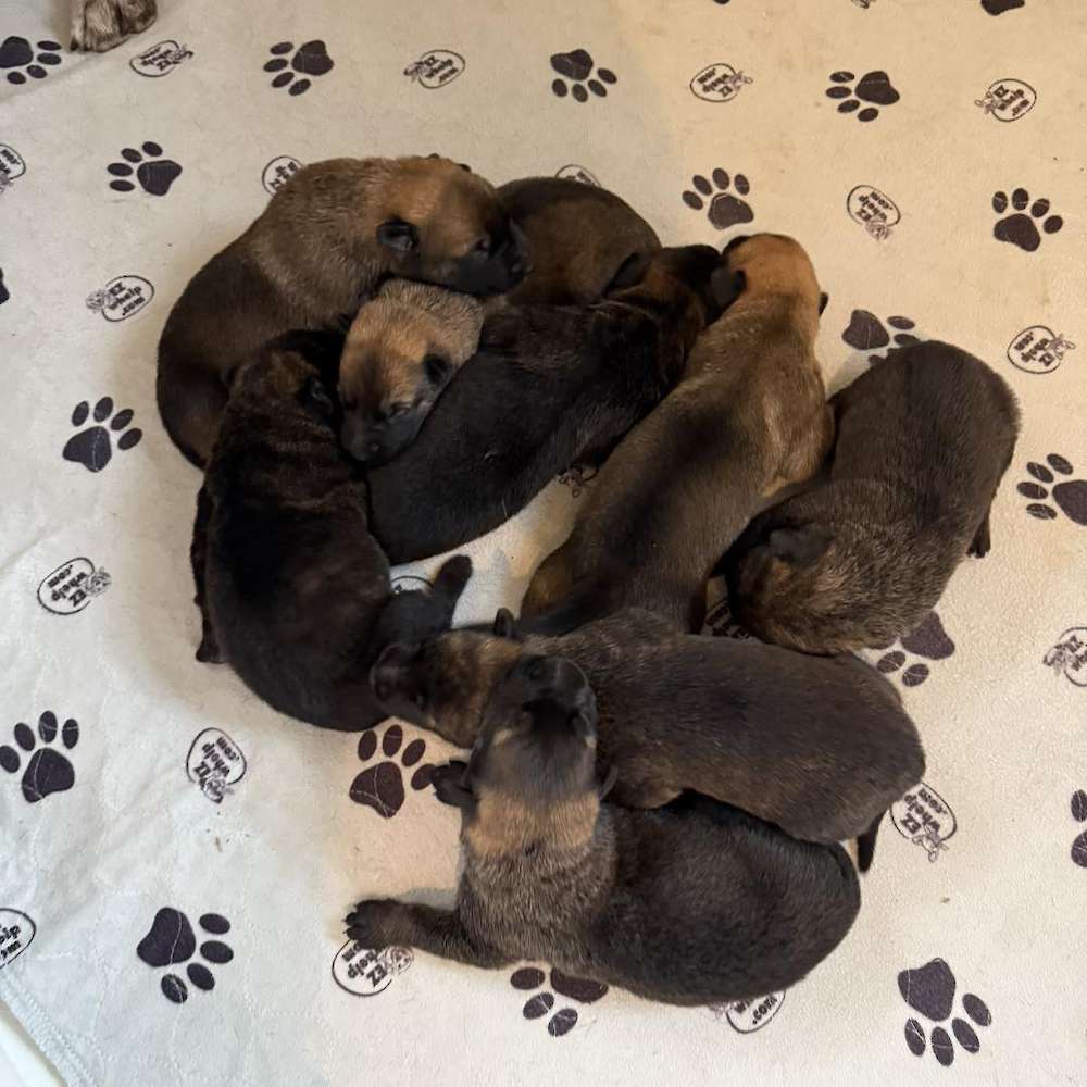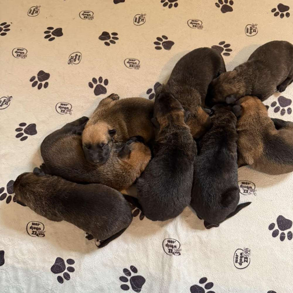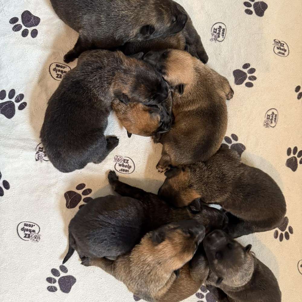 Prada's puppies were born 10/28/24. We expect this to be a really nice litter with the drive of a malinois and the brains of a German Shepherd. Prada has produced some phenomenal dogs and we expect no less with this litter. Prada is a really nice personal protection dog and enjoys her favorite sport of Dock Diving. Ready is a phenomenal working dog, he is yet untitled in bitework, because he has a little issue with not letting go of the bad guy! He is social and outgoing and will be your best friend if you play ball with him. He is a massive male and will bring some nice bone and drive to this litter. Ready is currently enjoying dock diving and just being an all around good boy. We expect really nice sport prospects, along with active family dogs. Both dogs have excellent orthopedics as well as clear Embark panels. This is a Shepinois or crossbred litter. We currently have 2 dark fawn females available in this litter. This litter will go home on 12/21/24 at 11:00 am eastern time.