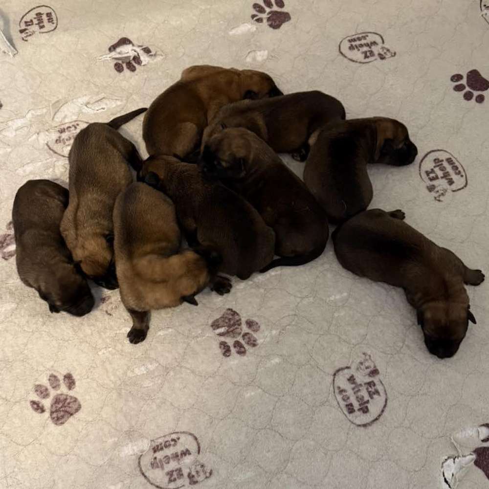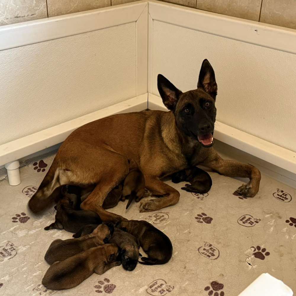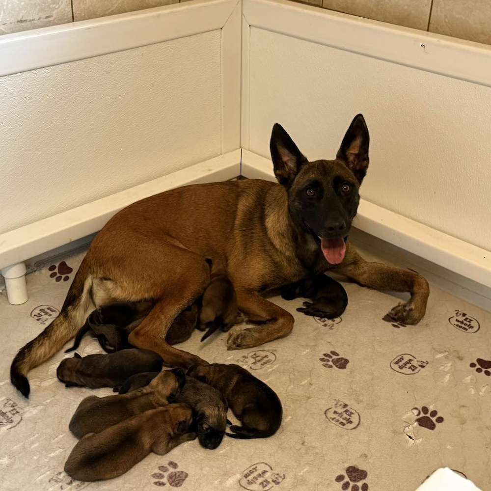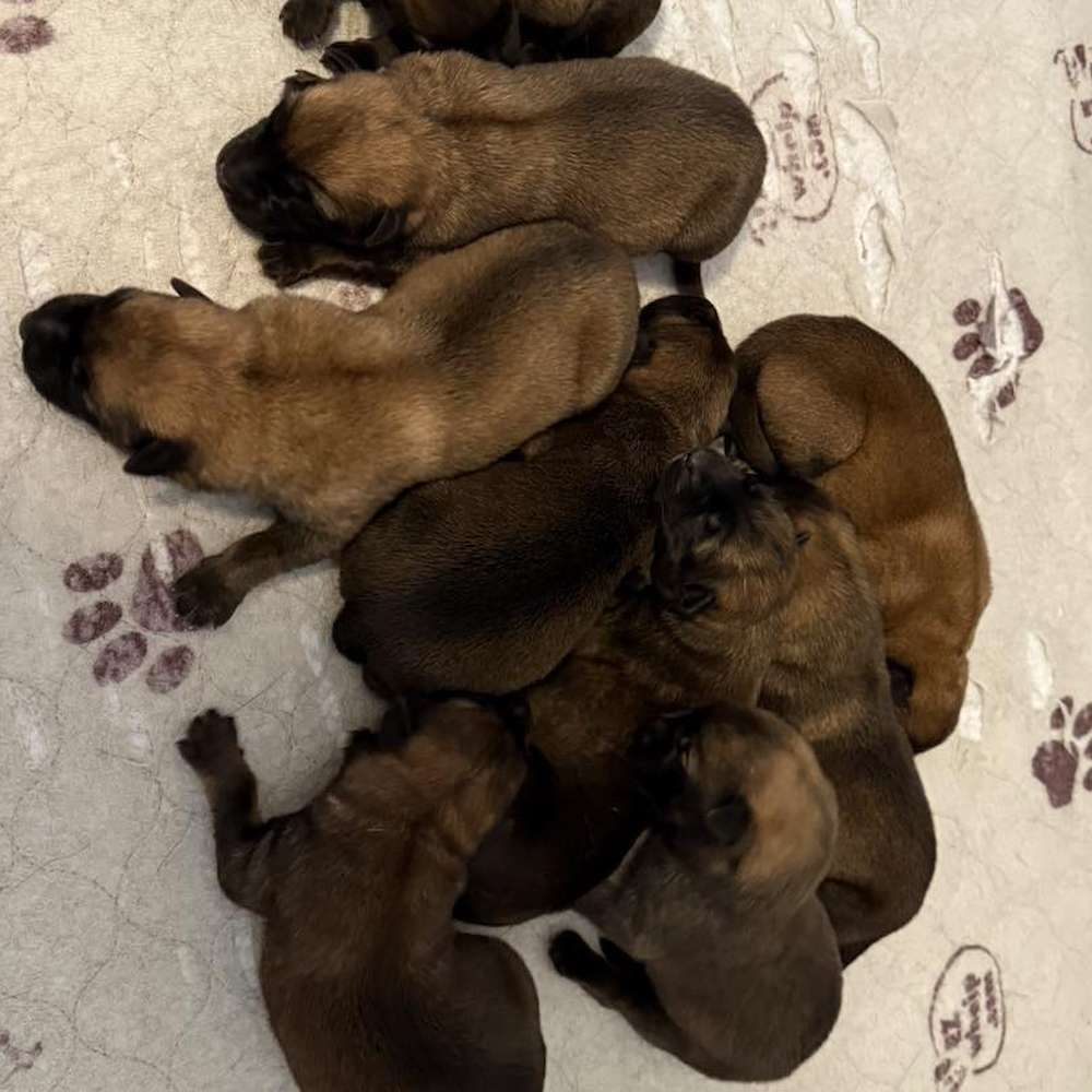 Update Rumor and Twig puppies born 3/31/25, there are 9 beautiful little bundles of joy. 6 Males and 3 Females, All puppies are fawn, some are darker than others, but the malinois coloring is definitely the dominate gene. We expect this to be an awesome litter, great family/home protection dogs, nosework candidates. Puppies will go home 5/24/25 @ 11:00 am eastern time. We are still accepting deposits on this litter.