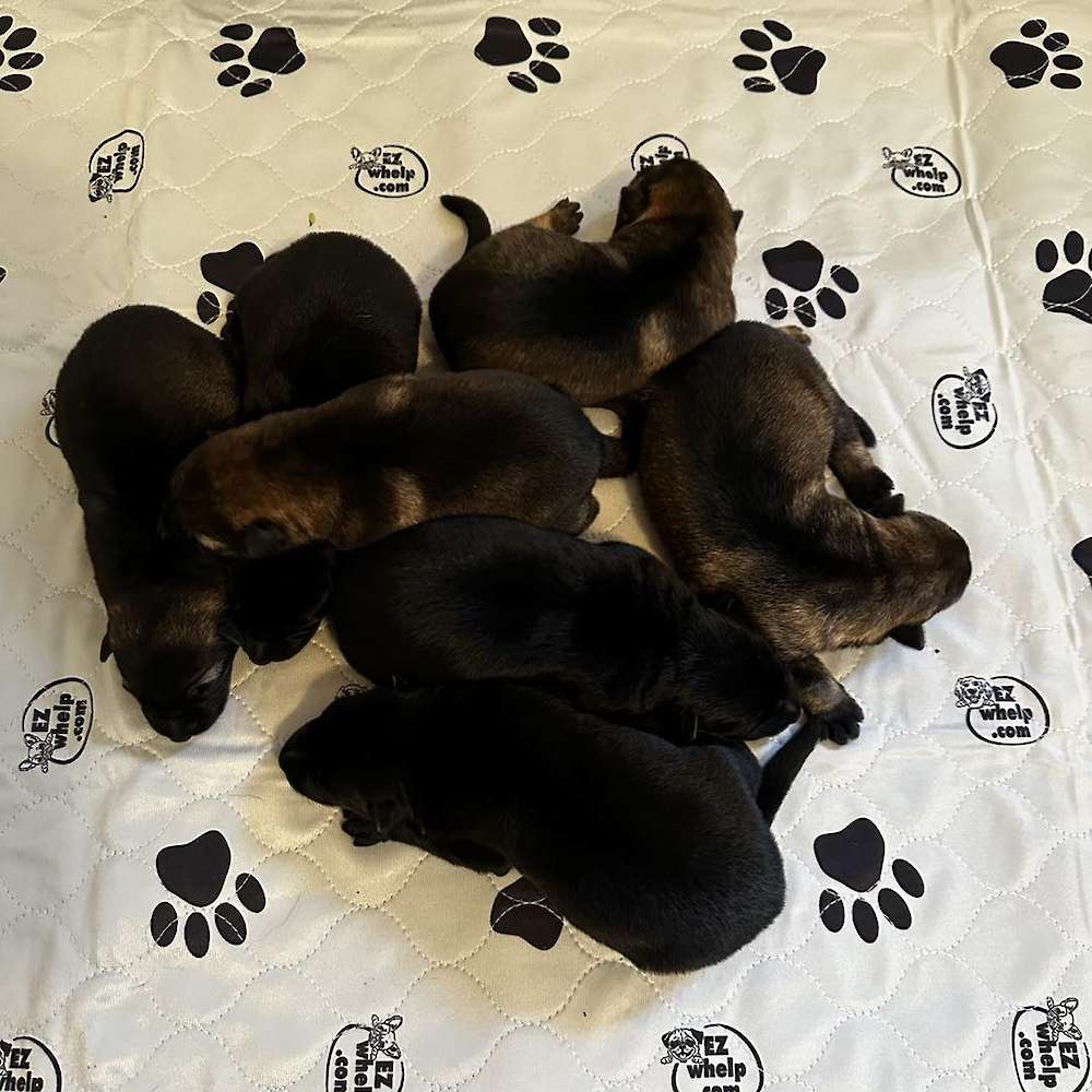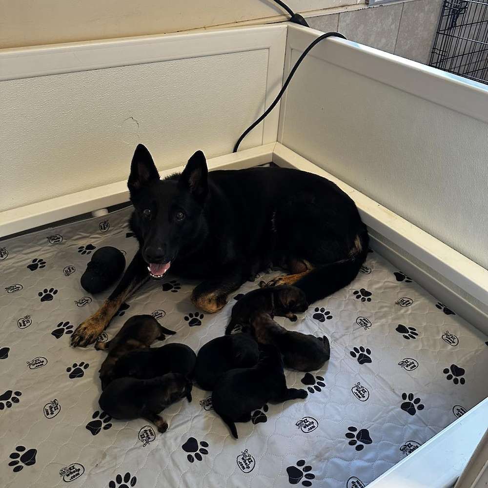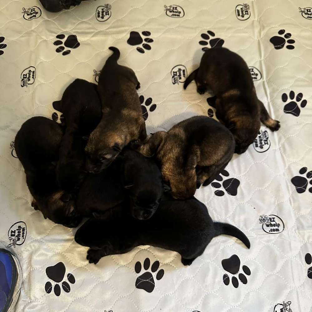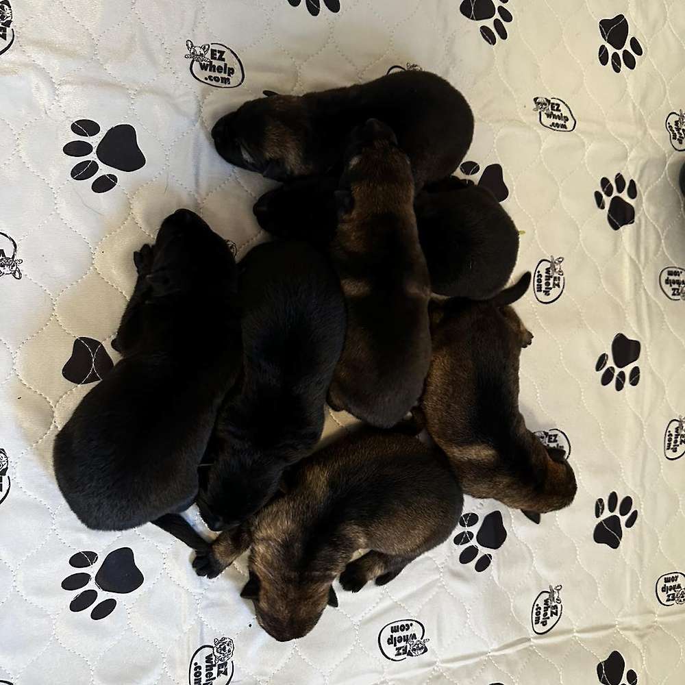 Quanah and Groot puppies were born on 11/5/22. 7 big healthy pups! 5 boys and 2 girls. There are 2 black males, 2 sable males and 1 bi color male. 2 sable females. Puppies will go home 12/31/22 @ 11:00 am eastern time. We expect this to be really nice litter. with great working drive and trainability, nice over all structure and are beautiful pups. These pups will be well rounded and great family dogs, potential working prospects and home protectors. These pups should do well in any type of scentwork as well, both Q and Groot have excellent sniffers!